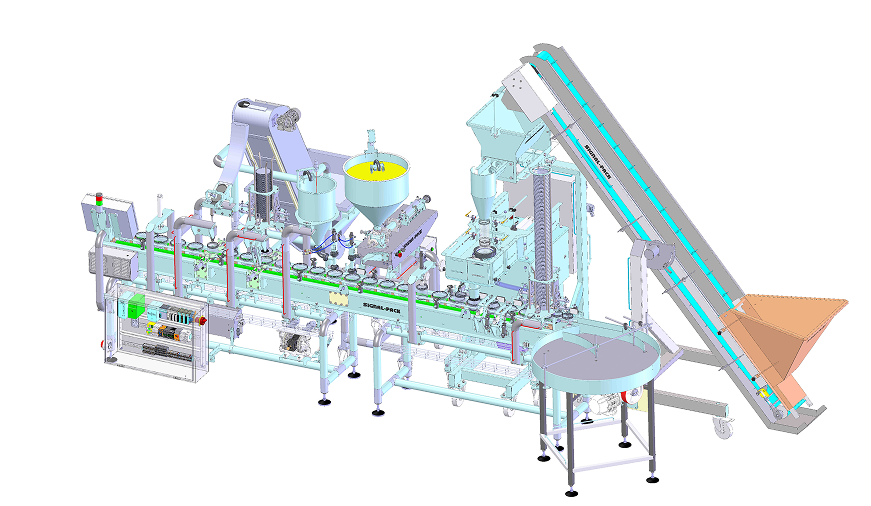 Линия способна обрабатывать до 24 банок в минуту с высокой точностью дозации основного продукта.