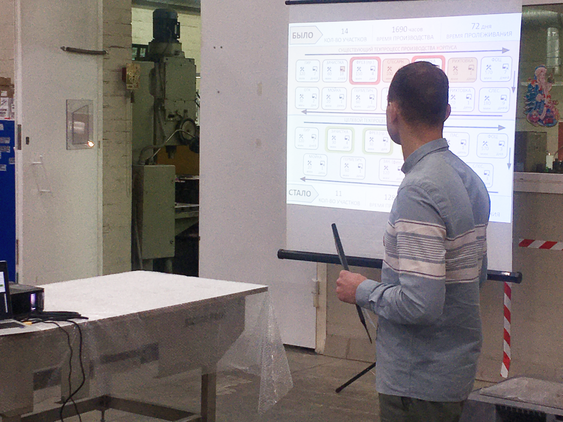 Рабочая группа сформировала предложения по устранению существующих сложностей: изменили технологический процесс производства детали, сократили маршрут перемещения за счёт переноса участка зачистки и строительство нового склада хранения металла на территории предприятия. За счет внедрения этих улучшений сократили срок производства корпуса для автомата ЭКСТРО МАКС .