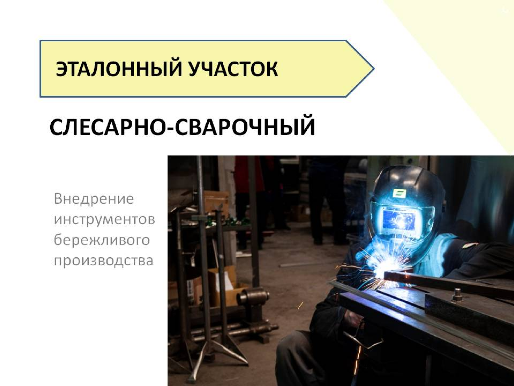 В механическом цехе был выбран слесарно-сварочный участок для создания «эталонного». На участке внедрены принципы бережливого производства. В работу введены бланки производственного анализа, благодаря которым более подробно выявляются причины простоя оборудования .