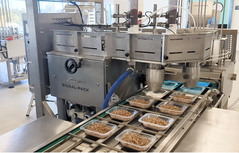 Дозатор используется для точного и быстрого дозирования таких продуктов, как салаты, рассыпчатые каши, рис, плов, квашеная капуста, отварные макаронные изделия, смеси морепродуктов и корейская морковь. Он идеально подходит для предприятий пищевой промышленности, занимающихся переработкой и упаковкой готовой еды в лотки и стаканы, пищевых комбинатов, фабрик-кухонь, комбинатов питания, производителей продукции в форматах Ready-to-eat, Ready-to-cook, Readу-to-heat, предприятий сектора HoReCa, предприятий мясоперерабатывающей отрасли и кейтеринговых компаний