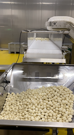 Транспортер обеспечивает подачу продуктов в морозильную камеру, их постепенное перемещение в ходе заморозки и выгрузку из морозильной камеры. Есть возможность регулирования скорости движения транспортера и температуры заморозки под конкретные виды продукции.
