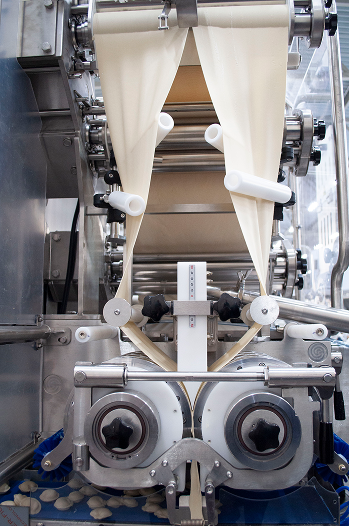 Машина для пельменей осуществляет автоматическое формирование изделий из теста и их заполнение начинкой. Мы используем собственную запатентованную технологию раскатки тестовой полосы, обеспечивающую улучшение структуры теста и повышение его эластичности.