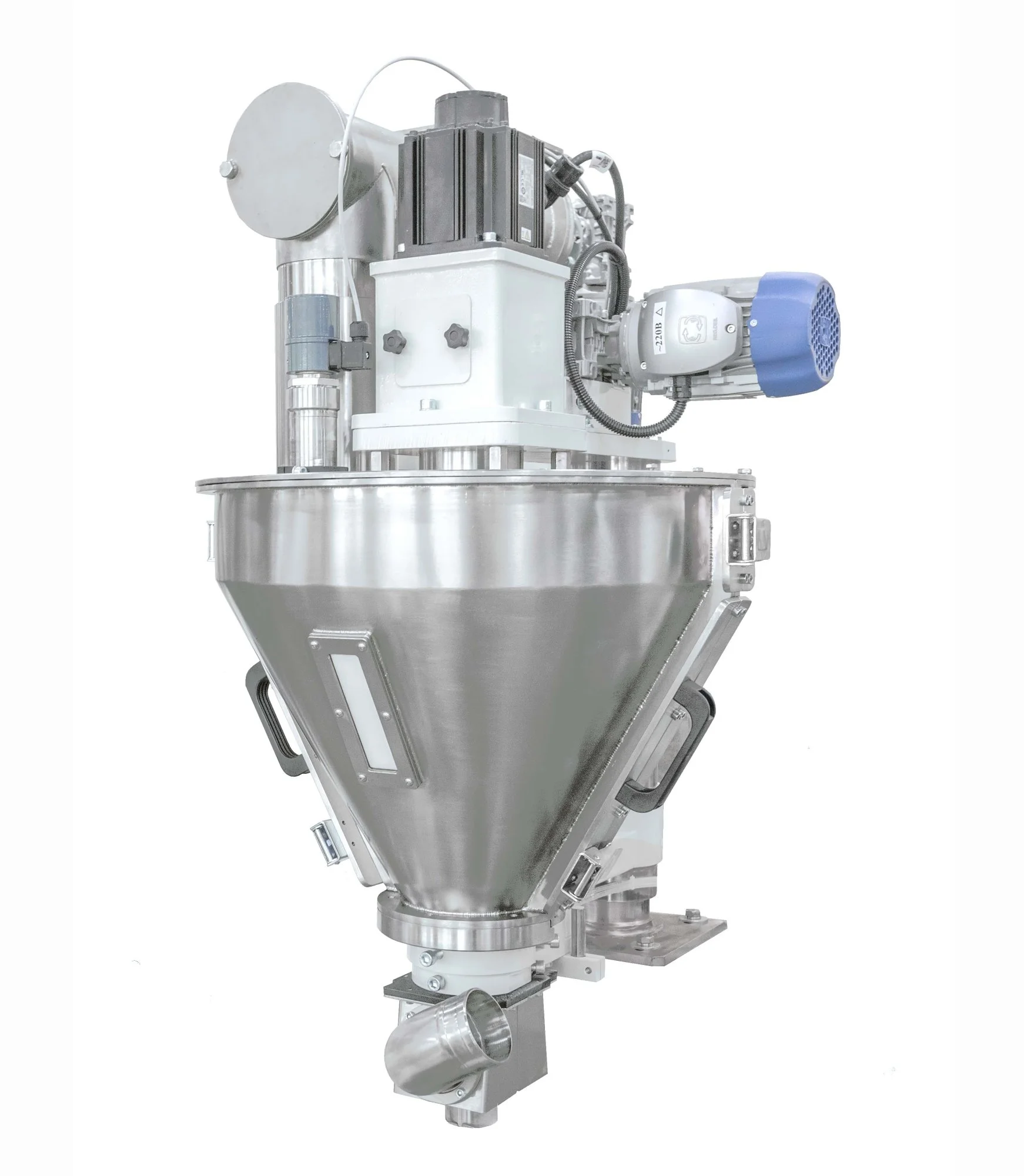 Шнековый дозатор используется для дозирования порошкообразных пылящих и сыпучих продуктов: муки, сахарной пудры, кофе и т.д., и может быть установлен на любую упаковочную машину.